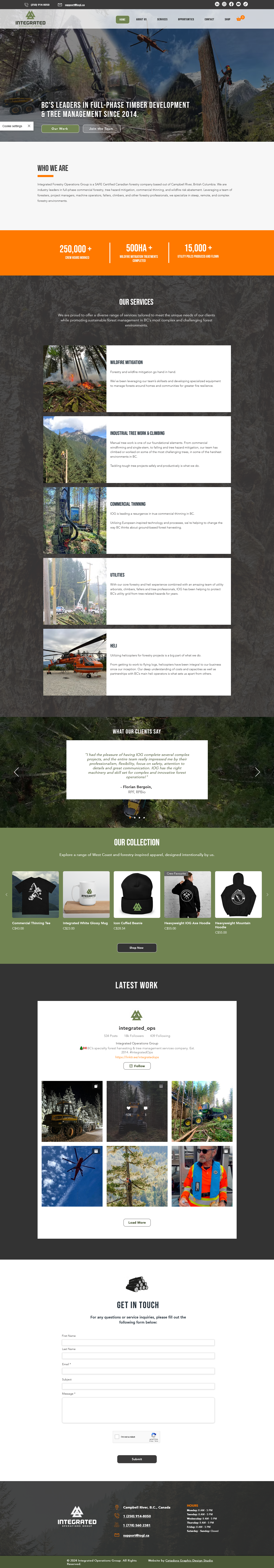 We developed a website for Integrated Operations Group (IOG) in Wix, showcasing their expertise in specialty forestry harvesting, tree management, single-stem heli logging, fire mitigation, and urban forestry services on Vancouver Island, BC, Canada.