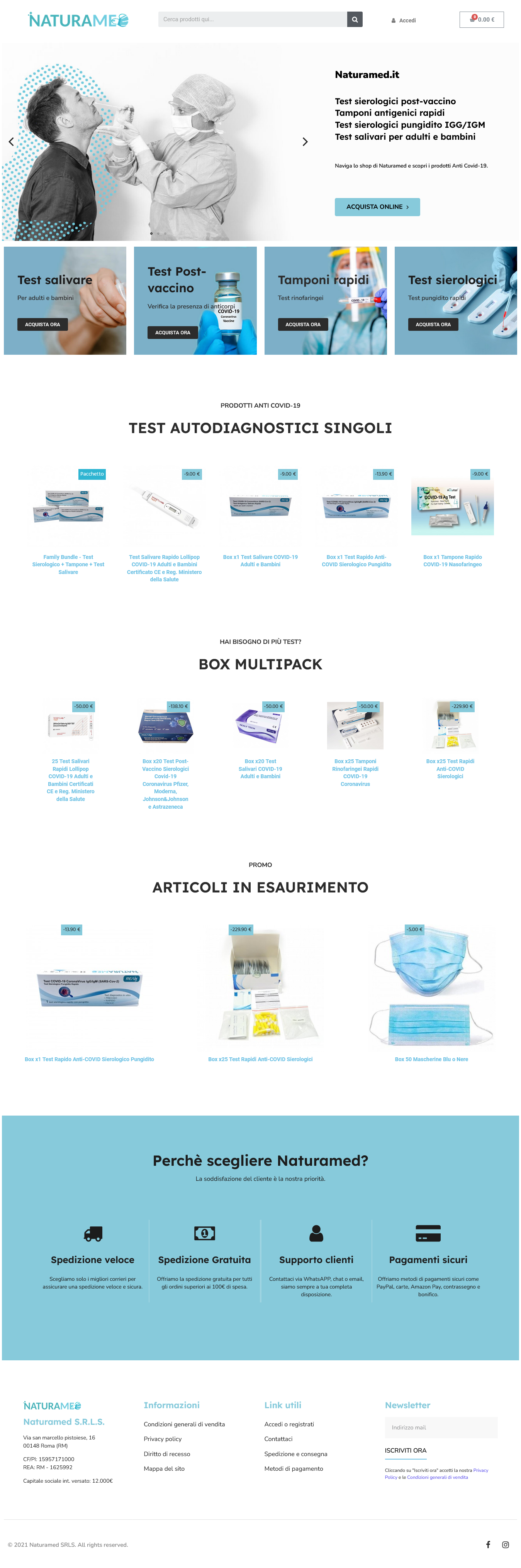 We developed Naturamed.it, an e-commerce website that offers a wide range of products including Covid-19 testing kits, protective masks, and other Covid-related items. The site is built on PrestaShop, providing a user-friendly experience for customers seeking reliable health and safety products.